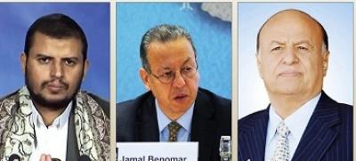 وفي المساعي التي يقودها المبعوث الأممي إلى اليمن، قال مكتب جمال بن عمر، أمس، "إن مساعد أمين عام الأمم المتحدة ومستشاره الخاص لليمن جمال بن عمر يواصل مشاوراته مع مختلف الأطراف والقيادات السياسية اليمنية لإيجاد حل سلمي توافقي للتوتر الحالي في البلاد بناء على مخرجات مؤتمر الحوار الوطني".