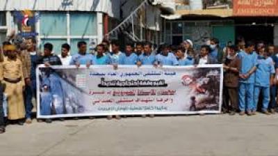 صعدة برس - نظمت هيئة المستشفى الجمهوري العام بصغدة صباح اليوم الخميس وقفة احتجاجية للعامبين بالهيئة تنديدا بجرائم الكيان الصهيوني واستهداف القطاع الصحي في قطاع غزة وارتكابه المزيد من المجازر الوحشية وحصارمستشفى كمال عدوان شمال القطاع واصابة مديره ومحاولة اغتياله للدكتور حسام أبو صفية.