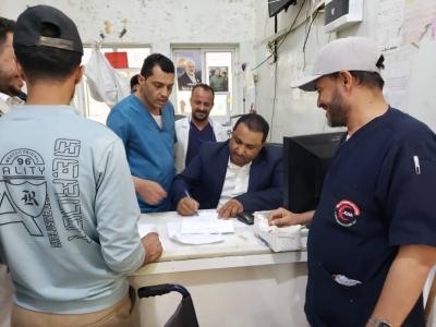 صعدة برس - أطلع الدكتور / علي الحمزي نائب رئيس الهيئة للشئؤون المالية والادارية بالمسشتفى الجمهوري العام بصعدة على مستوى الانضباط الوظيفي في مختلف الاقسام والعيادات الطبية وخدمات الطوارئ وسير العمل في الاقسام والارتقاء والاهتمام بمستوى الخدمات الطبية والعلاجية المقدمة للمواطنين..