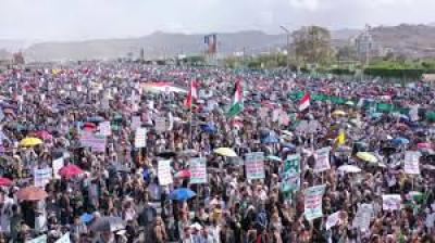 وعبرت الحشود عن الفخر والاعتزاز بالعمليات البطولية التي تنفذها القوات المسلحة اليمنية ضد كيان العدو الصهيوني المجرم، وآخرها إغراق سفينتين تابعتين لشركات انتهكت قرار حظر الدخول إلى الموانئ الفلسطينية المحتلة.