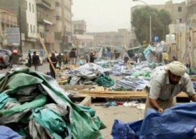 حيث قامت جرافات برفع عدد من المخيمات التابعة لساحة الجامعة من الجهة الجنوبية على الخط الدائري القريب من المركز الطبي الايراني وبالتحديد امام عمارة الخولاني ومدرسة أسماء ومعامل تشرين ، القريبة من تجمعات الحوثيين ، كما تم ازالة الجواجز الاسمنتية .