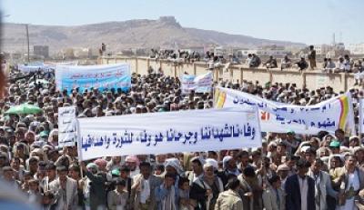 وشارك في المسيرة عشرات الألاف من أبناء المحافظة جابت شوارع المدينة منددة بحكومة المبادرة ومطالبه لها بسرعة الإستجابة لمطالب جرحى الثورة كونهم من فجروا الثورة وبفضل دمائهم أسقطوا رموز النظام السابق.