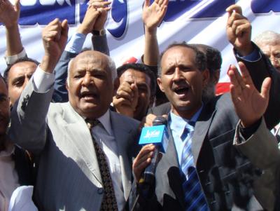 وطالب رئيس اللجنة التحضيرية للحوار الوطني محمد سالم باسندوة في كلمته التي ألقاها اليوم في المهرجان الجماهيري للمشترك ، طالب بتوفير الضمانات الكافية لاحترام الدستور وعدم التمديد والتوريث، مجددا تأكيده على ضرورة إجراء حوار وطني شامل لا يستثني أحد تحت رعاية عربية وإقليمية وبإشراف أصدقاء اليمن ، مشددا على ضرورة تحديد القضايا الرئيسية للتحاور والتي تعاني منها البلاد وفي مقدمتها تحقيق التداول السلمي للسلطة والشراكة الوطنية، وقضيتي الجنوب وصعدة، .