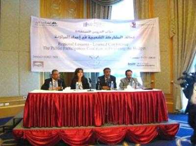 المؤتمر الذي يختتم أعماله غدا يشار إلى أن تحالف المشاركة الشعبية لإعداد الموازنة العامة للدولة الذي جاء عنه، هو تحالف إقليمي مكون من ثلاث دول هي الأردن واليمن والبحرين بدعم من معهد بايستر الممول من قبل مبادرة الشراكة الشرق أوسطية(mepi).