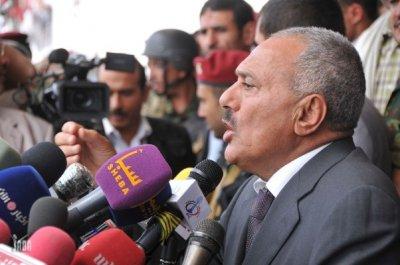 وقال " لن أرد على احد ولكن الشكر والتقدير لأبنائي الشباب والشابات لكل جماهير شعبنا العظيم ، إنا اتعهد لكم أيها الجماهير أني سأفدي هذا الشعب بالروح بالدم ، سأضحي ، إنني سأضحي بالدم والغالي والنفيس من اجل جماهير شعبنا اليمني العظيم ."