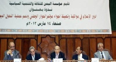 وكانت الندوة التي شارك في رئاستها الدكتور حسن العمري ومطهر تقي مقررا قد تناولت عدد من أوراق العمل حول دور الإعلام في مواكبة وتهيئة أجواء مؤتمر الحوار الوطني ودعم عملية التحول الديمقراطي ، حيث تناولت ورقة العمل الاولي المقدمة من مدير مكتب رئاسة الجمهورية الكاتب الصحفي نصر طه مصطفى تحت عنوان " دور الإعلام في التهيئة لمؤتمر الحوار الوطني" الدواعم المساعدة للإعلام للقيام بدوره الإيجابي، وكذا دور الإعلام في تهيئة المسرح السياسي والحزبي ..مؤكداً أن الحوار يمثل الطريق الوحيد الأمن لإنقاذ اليمن.