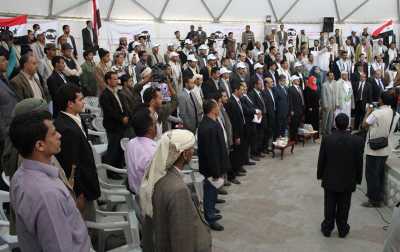 وقد تقدم المسيرة الاستاذ/ يحيى محمد عبدالله صالح رئيس منظمة أمة عربية واحدة والاخوة اعضاء اللجنة الشعبية لمناصرة سوريا وقضايا الامه العربيه وهم الاستاذ/محمد محمد عبدالله صالح والاستاذ/ نائف القانص والاستاذ/ كمال شجاع الدين والاستاذ/ يحيى العابد وعدد من الشخصيات الاجتماعيه والنشطاء ,, وقد حضر الفعاليه التي القيت فيها العديد من الكلمات المعبرة عن المخططات والاجندات الساعيه لتدمير الوطن العربي وتقسيمه كما حدث في العراق ومايحدث الان في سوريا وفي عدد من الدول العربية بحضور المفكرين والسياسيين اليمنيين والعرب وممثلي منظمات المجتمع المدني والسفير السوري لدى الجمهورية اليمنيه. |