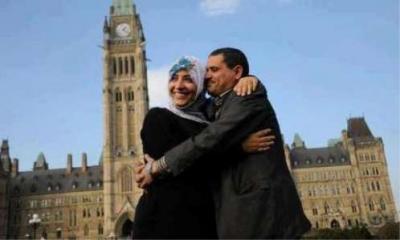 صعدة برس - نشر ناشطون على موقع التواصل الاجتماعي صورة رومانسية تجمع الناشطة اليمنية توكل كرمان مع زوجها في ساحة عامة بالعاصمة البريطانية لندن .