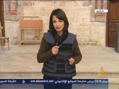 المذيعة غادة العويس في مراسلة لها من حلب على قناة الجزيرة القطرية