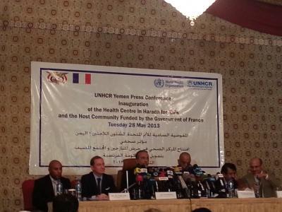 صعدة برس - نظمت المفوضيه السامية للامم المتحدة لشئوون اللاجئيين باليمن اليوم بصنعاء المؤتمر الصحفي حول افتتاح المركز الصحي في مخيم المزرق مديرية حرض محافظة حجة ،وبتمويل من الحكومة الفرنسية.