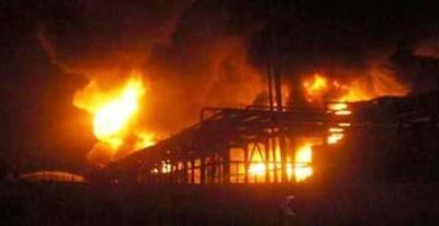 شب حريق في 4 محلات تجارية تحتوي على بضائع ومواد مختلفة وامتد منها إلى 120 برميل بترول وكذا خزان كبير للمواد البترولية تقدر قيمته بـ250 ألف ريال سعودي بالإضافة إلى إصابة شخصين تتراوح أعمارهما بين 25-28 عاماً بحروق مختلفة.