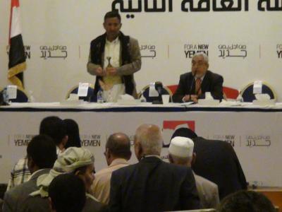 المصادر أكدت أن رئاسة الحوار عقدت إجتماع لها على الفور لمناقشة ما يحدث ضمت ياسين سعيد نعمان وسلطان العتواني وصالح هبرة ومحمد قحطان وعبدالكريم الإرياني وتم الإتفاق على رفع الجلسة نهائياً إلا أن محمد قحطان عاد الى نفس القاعة ليدير الجلسة بمن تبقوا من الأعضاء وبعد مغادرة ياسين والعتواني والإرياني .