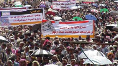وخرجت المسيرة التي شارك فيها متظاهرون من معظم مديريات المحافظة تحت شعار: (معاً ضد انتهاك السيادة وقتل اليمنيين).