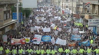 وشهدت محافظات حجة وصعدة وذمار مسيرات مماثلة نددت بالصمت العربي إزاء ما وصفوه بسياسة العداء والإستعلاء الذي تمارسه أمريكا بحق الشعوب العربية. |