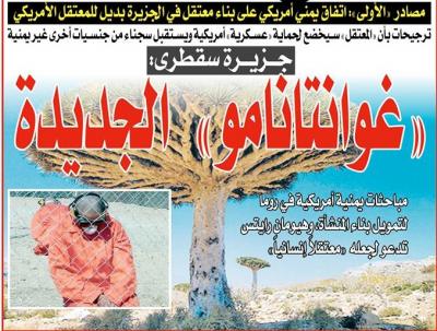 كشفت مصادر مطلعة لـ"الأولى" عن اتفاق يمني أمريكي على إنشاء معتقل سياسي في جزيرة سقطرى, بغرض نقل السجناء اليمنيين, وربما آخرين, في "غوانتانامو" إليه.