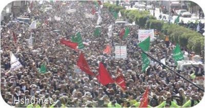 وحمل المشاركون في المسيرة لافتتات تعبر عن الحزن عن مقتل الامام " حسين بن علي " وأخرى تعزي الامة العربية بـ "المصاب الجلل" .