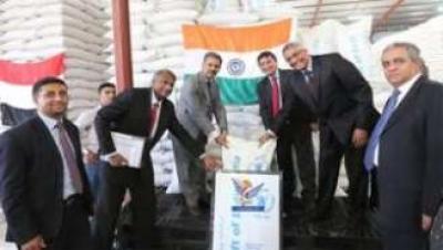 حيث سلم رئيس دائرة الشرق الأوسط والخليج بوزارة الخارجية الهندية مريدول كومار هذه الكمية من مادة القمح لبلادنا اليوم بحضور الوكيل المساعد بوزارة التخطيط والتعاون الدولي لقطاع التعاون الدولي الدكتور عبد القوي نعمان ومدير عام التعاون الثنائي مع دول آسيا واستراليا في وزارة التخطيط فضل عباس الوزير وكذا الممثل المقيم والمدير القطري لبرنامج الأغذية العالمي في اليمن بيشو براجولي والقائم بالأعمال في السفارة الهندية..