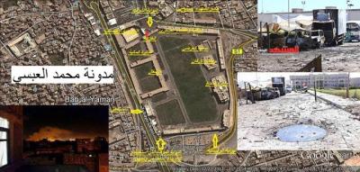 8- البوابة الشرقية (للمجمع وليس للمستشفى) التي تم السيطرة عليها لاحقاً من قبل المقتحمين والتي يتم الضرب عليها الأن ملاصقة للخزينة العسكرية وهي جزء من الدائرة المالية.