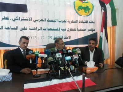 عقدت القيادة القطرية لحزب البعث العربي الاشتراكي - قطر اليمن – مؤتمرا صحفيا صباح اليوم سلطت فيه الأضواء على مختلف المستجدات الراهنة على الساحة الوطنية والقومية وخاصة موقفها من التوقيع النهائي على وثيقة الحوار الوطني.