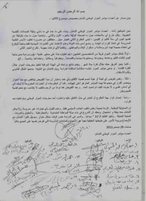 الموقعون أعضاء مؤتمر الحوار الوطني الشامل