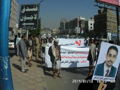 و انطلقت المسيرة من امام المستشفى بشارع الستين بصنعاء الى امام منزل الرئيس عبد ربه منصور هادي منفذين وقفة احتجاجية لمدة ساعة.