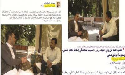 وردا على اخبار نشرت على نطاق واسع خلال الايام القليلة الماضية وافادت بان الشيخ القبلي "هاشم الاحمر" وهو نجل الشيخ القبلي المتوفي "عبدالله بن حسين الاحمر" وقع في الاسر لدى جماعة الحوثي في اليمن قبل اكثر من اسبوع قام الصحفي "محمد الخامري" وهو رئيس تحرير صحيفة "ايلاف" اليمنية المقربة من جماعة الإخوان المسلمين بنشر صورة له تجمعه بالشيخ "هاشم الاحمر" نافيا صحة الانباء المنشورة عن تعرضه للآسر.