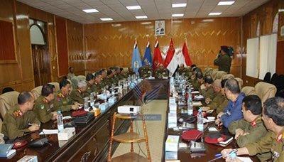 الاجتماع الذي عقد في قيادة وزارة الدفاع ضم مساعدي وزير الدفاع ورؤساء الهيئات ومدير الاكاديمية العسكرية العليا وقادة القوى والمناطق وقائد العمليات الخاصة وقائد احتياط وزارة الدفاع وعدد من مدراء الدوائر وقادة الوحدات المعنية.