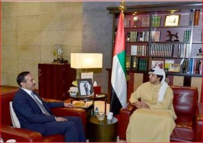صعدة برس-متابعات - التقى سعادة السفير أحمد علي عبدالله صالح سفير الجمهورية اليمنية لدى دولة الإمارات العربية المتحدةاليوم الأحد في قصر الرئاسة بالعاصمة أبو ظبي بسمو الشيخ منصور بن زايد آل نهيان نائب رئيس مجلس الوزراء وزير شؤون الرئاسة.