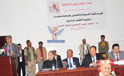 فيما عبر رئيس جامعة صنعاء الدكتور عبد الحكيم الشرجبي عن المكانة العلمية المرموقة التي تبوأها الدكتور شرف الدين بين أعضاء هيئة التدريس وريادته في مجال القانون العام.
