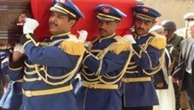 شيع اليوم في موكب جنائزي حزين شهداء الواجب من أبطال القوات المسلحة الذين استشهدوا أثناء تصديهم للعمل الإجرامي الغادر الذي استهدف إحدى النقاط الأمنية في جولة المصباحي بأمانة العاصمة الجمعة الماضية من قبل جماعات الشر من تنظيم القاعدة الإرهابية و هم:
