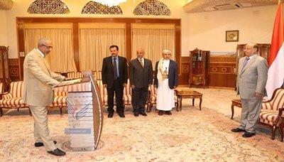 وعقب أداء اليمين الدستورية التقى بهم الأخ الرئيس مثمناً جهود المحافظين التي بذلاها في ظروف صعبة ومعقدة وتغليبهم للمصلحة الوطنية بعيداً عن المصالح الذاتية والحزبية.