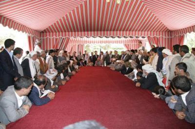 صعدة برس-متابعات - توافدت جموع غفيرة من المواطنين والأعيان والمشائخ وممثلين عن الأحزاب والتنظيمات السياسية ومنظمات المجتمع المدني منذ صباح اليوم الباكر إلى منزل الزعيم علي عبدالله صالح رئيس المؤتمر الشعبي العام للتعبير عن استنكارهم وإدانتهم للعمل الإجرامي التآمري الذي كان يستهدف حياة الزعيم علي عبدالله صالح وأسرته وقيادات المؤتمر الشعبي العام وأحزاب التحالف الوطني من خلال النفق الذي قاموا بحفره إلى منزل الزعيم علي عبدالله صالح.