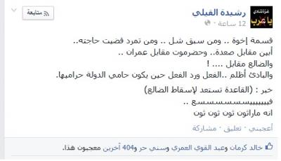 و أضافت في منشورها ما نصه: "خبر: (القاعدة تستعد لإسقاط الضالع)" و اتبعته بالقول: فيييييييسسسسسسع .. انه ماراثون ثون ثون ثون..