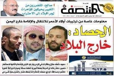 وأضافت صحيفة المنتصف: على خلفية الإجراءات والترتيبات المتعلقة، والتي أخذها كل من حميد وحسين الأحمر بصفة انفرادية، نشبت خلافات بين الأخوة الأحمر، خصوصاً من جانب هاشم الذي اشتاط غضباً، ما إنْ علم بالترتيبات التي أخذها وأعدّها حميد وحسين خارج اليمن. واتهمهما بتوريط العائلة والإضرار بوضعها وسمعتها "ودفوا بنا، والآن يفلتونا ويهربوا". قبل أن يتدبَّر هو الآخر أمره ويجد لنفسه ترتيباً أيضاً.