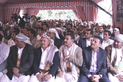 وأختتم الزعيم كلمة قائلاً : أنا أحيي هذه القبائل وأحيي الشباب وأحيي المشائخ الذين أتوا من بلاد الروس وسنحان وبني بهلول أحييكم وأشكركم على تضامنكم معنا وإدانتكم لهذا الحادث الإرهابي وشكراً جزيلاً والسلام عليكم ورحمة الله وبركاته.