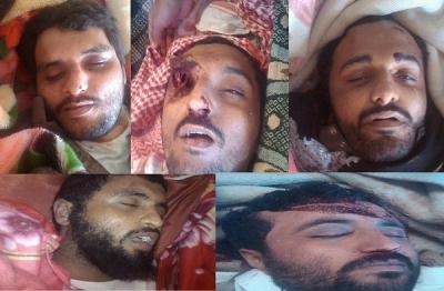 واظهرت الصور 5 اشخاص تتراوح اعمارهم بين اواخر العشرينات وبداية الثلاثينات وعلى وجوهم اثار دماء فيما تظهر اصابة بعضهم باعيرة نارية اخترقت منطقة "الرأس" .