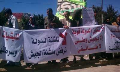 و أكد المتظاهرون أن من يسعون لنشر المليشيات المسلحة في مدينة تعز و مديرياتها، يهدف لتنفيذ مخطط لنقل الصراع إلى تعز و تحويلها إلى بؤرة للصراع و التوتر.