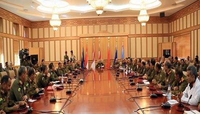 وفي حديثه أمام القادة تناول القائم بأعمال وزير الدفاع مقتضيات وتطورات الوضع الراهن وتفاعلاته وتأثيراته على مسيرة البناء الوطني وعلى كافة المستويات والصعد السياسية والاقتصادية والاجتماعية والأمنية والعسكرية.