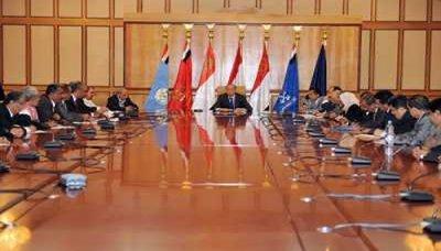 وجرى خلال الاجتماع مواصلة النقاشات حول المواضيع المتصلة بالأوضاع العامة على مختلف الصعد وكذا موضوع التصور العملي لآلية المبادرة الخليجية والحوار بشأنها مع المعارضة الممثلة بأحزاب اللقاء المشترك.