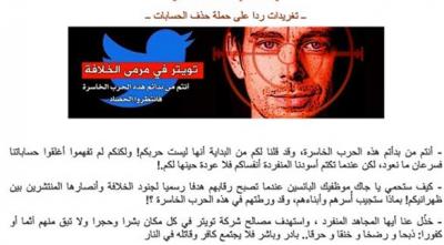 ودعا أنصار التنظيم في كتابات على الإنترنت يوم أمس الأحد، إلى شن هجمات ضد تويتر ومصالحه، وشملت الكتابات تهديدات بالقتل، حسبما أفاد موقع باز فيد الإعلامي الذي كان أول من نشر القصة وشبكة (إن بي سي).