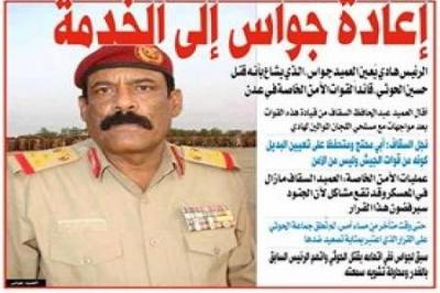 و نقلت الصحيفة عن محمد السقاف، نجل العميد عبد الحافظ السقاف الذي أكد صدور قرار إقالة والده من قيادة قوات الأمن الخاصة في عدن، وتعيين العميد جواس بديلاً عنه.