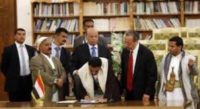 وذكر المصدر الذي طلب عدم ذكر اسمه، إن الرئيس هادي أكد في أكثر من لقاء خلال الأيام الثلاثة الماضية أن مؤتمر الرياض الذي يجري الترتيب له حالياً هو الذي سيتم التوافق على نتائجه، وهو الحوار الشرعي، معتبراً أن الحوار الجاري بإشراف مبعوث الأمم المتحدة جمال بن عمر في صنعاء غير شرعي وغير مقبول ولا يمكن الاعتراف بنتائجه.