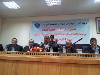 وكان دشن الأمين العام للمؤتمر الشعبي العام الأستاذ عارف الزوكا، ومعه عضو اللجنة العامة رئيس معهد الميثاق الأستاذ محمد العيدروس، وعضو اللجنة العامة رئيس دائرة الشباب والطلاب الأستاذ يحيى دويد، برنامج اللقاءات التنظيمية الموسعة لقيادات فرع المؤتمر الشعبي بمحافظة صنعاء، السبت، بحضور رؤساء فروع الدوائر والمديريات ومسؤولي القطاع التنظيمي والشبابي والنسوي وأعضاء اللجنة الدائمة وأعضاء مجلس النواب.