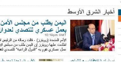 صعدة برس-متابعات - قالت رسالة من الرئيس اليمني عبد ربه منصور هادي اطلعت عليها رويترز إن اليمن طلب من مجلس الأمن الدولي يوم الثلاثاء دعم عمل عسكري تقوم به "الدول الراغبة" للتصدي لتقدم الحوثيين.