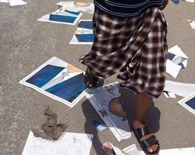 وقد قام المواطنون بإقتصاص الصور ورميها في شوارع المدينة لتكون عرضة لأن تنداس على أقدام المارة في الشوارع.