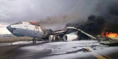 وقالت مصادر ملاحية ان القصف ادى الى احتراق طائرة نقل نوع يوشن , وتدميرها .