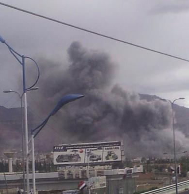 ودوت انفجارات عنيفة عقب قصف طيران العدوان السعودي ،فيما افاد شهود عيان بان سيارات الاسعاف هرعت الى المكان الذي تعرض للقصف .