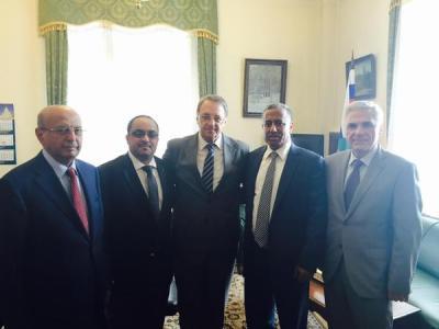 صعدة برس-متابعات - التقى وفد المؤتمر الشعبي العام برئاسة الاخ / عارف الزوكا الامين العام وعضوية الامناء المساعدين ياسر العواضي والدكتور ابو بكر القربي ، اليوم الجمعه ٢٧-٦-٢٠١٥م في وزارة الخارجية الروسية بالسيد ميخائيل باقدانوف نائب وزير الخارجية الروسي ومبعوث الرئيس بوتين الى الشرق الاوسط .