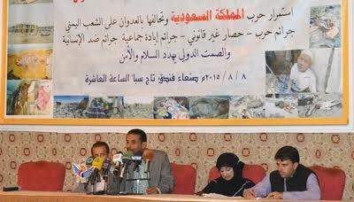 ودعا منظمات حقوق الإنسان الدولية إلى التحقيق والتقصي في جرائم الحرق والتعذيب والقتل بالرصاص للمواطنين والأسرى بدوافع التمييز المناطقي والمذهبي التي يرتكبها تنظيم القاعدة وداعش في اليمن كون هذه الجرائم دخيلة على المجتمع اليمني وينميها ويدعمها نظام آل سعود بالمال والسلاح.