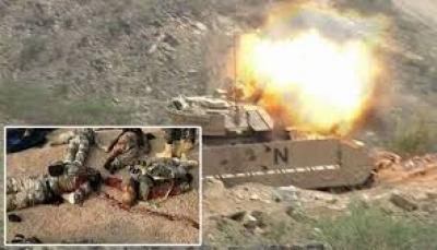 وزارة الدفاع اليمنية من جهتها .. أعلنت عن تدمير الجيش واللجان الشعبية دبابة ابرامز وكاسحة ألغام وآلية عسكرية خلف موقع قمر بجيزان.